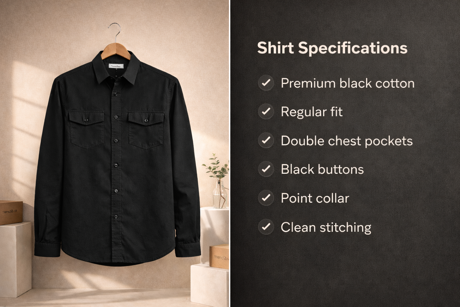A premium black denim utility shirt that keeps your look clean, bold, and versatile—perfect for daily wear, office, and smart casual styling.