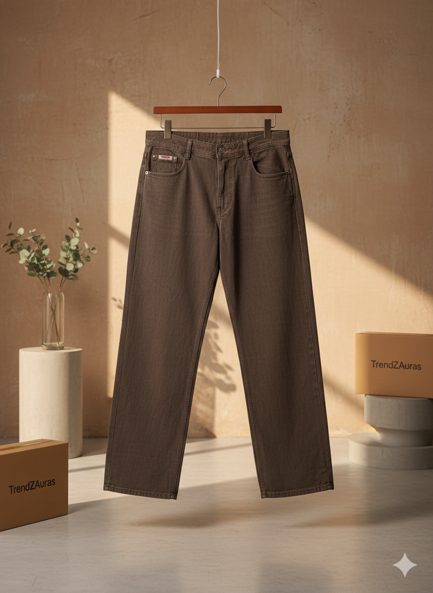 TrendZAuras Premium Earth Brown Straight-Fit Relaxed Jeans