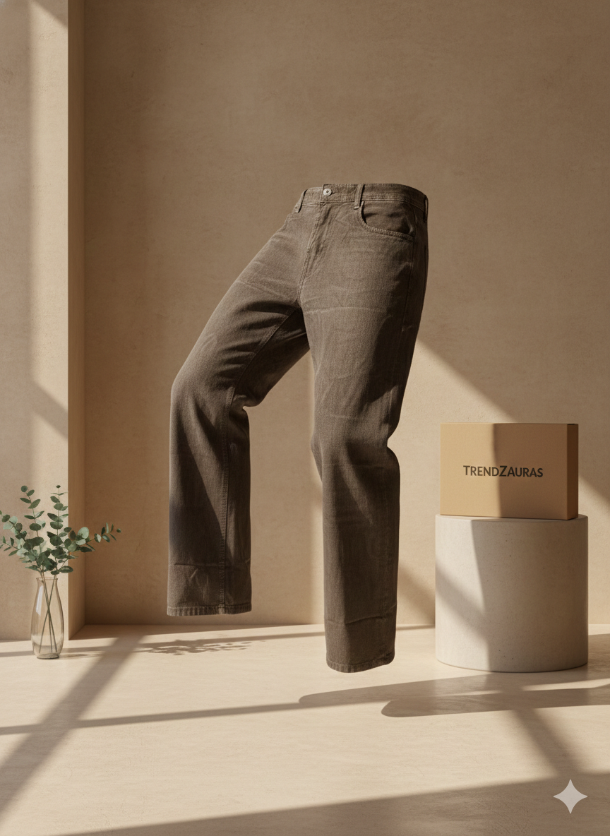 Introduce a sophisticated warmth to your wardrobe with the TrendZAuras™ Earth Brown Denim. These jeans are meticulously crafted for those who prefer the clean lines of a classic straight-fit over modern tapered styles. Featuring an open-leg structure, this pair ensures a structured fall that complements the natural silhouette of the leg.
